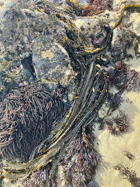 When he goes scuba diving, Andy tells me he often can’t tell if the organisms he sees are plants or animals or neither or some in-between, and I got a little taste of that on the beach. Was I looking at a rock or a barnacle? Algae or seaweed? Anemone or plant? My childhood spent near rivers and lakes did not prepare me for the vast weirdness of the ocean.